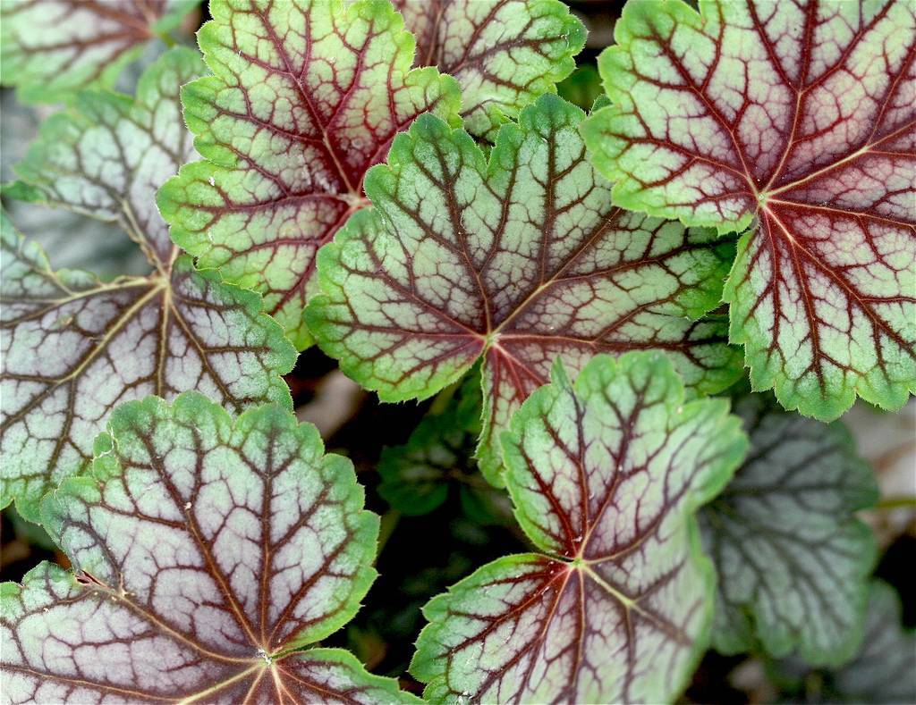 На фото: Красивые листья гейхеры