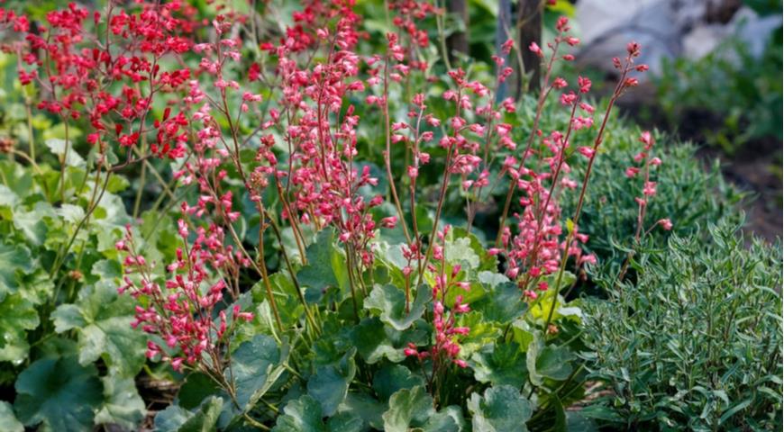 Гейхеру достаточно часто применяют для оформления бордюров, клумб или цветников