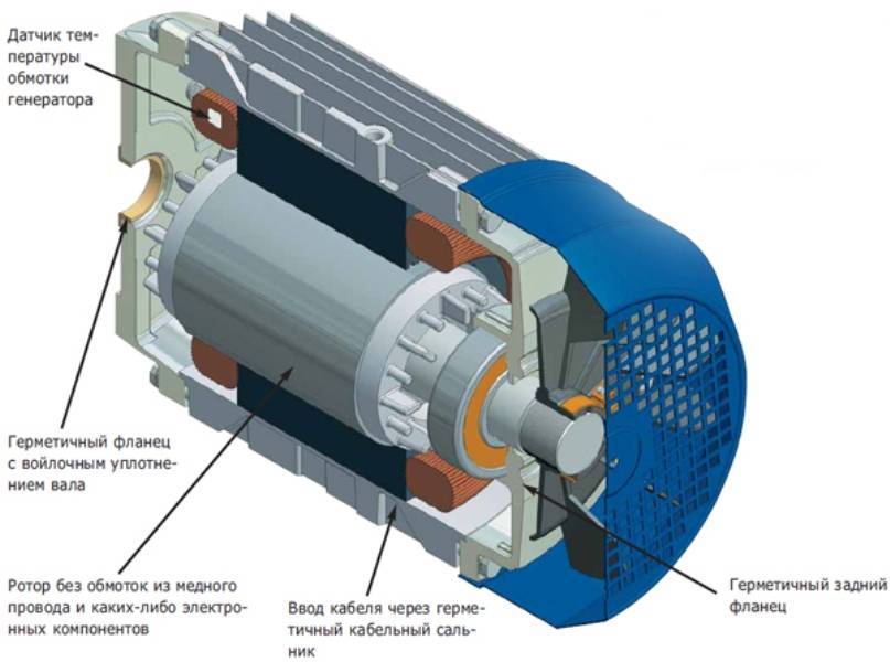 Обратите внимание! Такие установки практически не подвержены коротким замыканиям и обладают повышенной защитой от воздействия внешних факторов. Асинхронный генератор