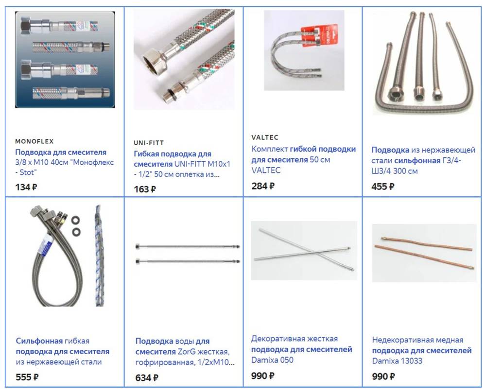 Рис. 12 Стоимость рукавов для подсоединения смесителей