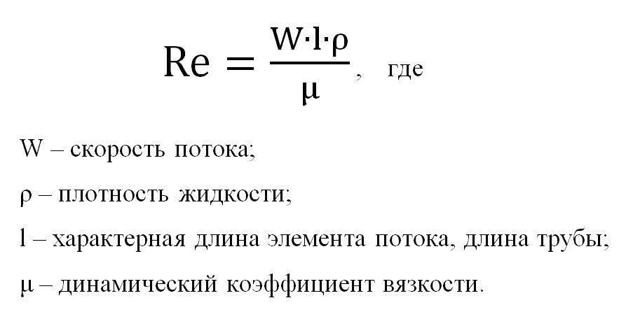 Критерий Рейнольдса (Re) дает понятие о соотношении сил инерции к силам вязкого трения в потоке жидкости. Значение критерия характеризует изменение соотношения указанных сил, что, в свою очередь, влияет на характер потока носителя в трубопроводе. Принято выделять следующие режимы потока жидкого носителя в трубе в зависимости от значения данного критерия: