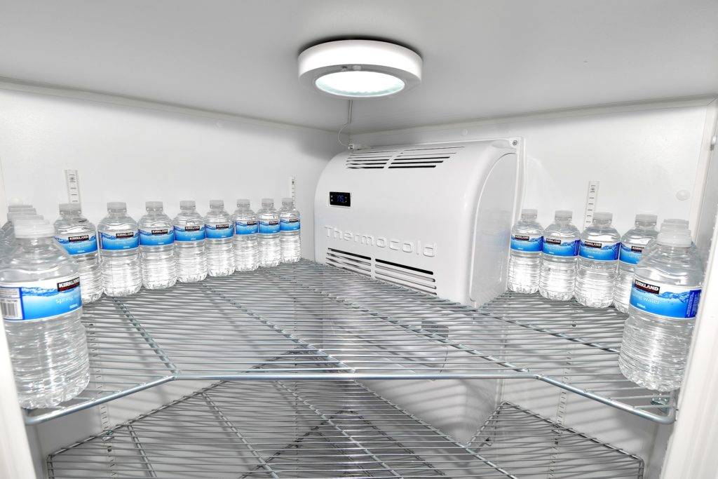 Заданный уровень поддерживает электронная система управления. Модель имеет 3 режима звуковой индикации: при отключении электропитания, открытой дверце и повышении температуры внутри.