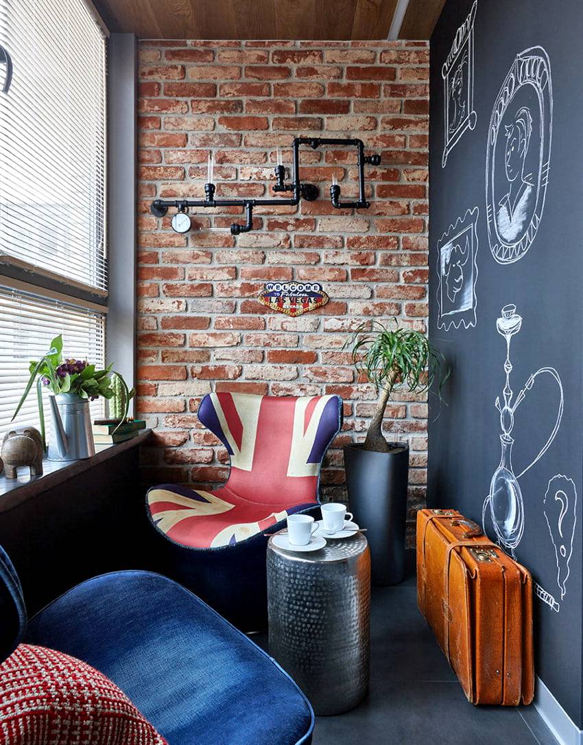 На балкон, выходящий на северную сторону, легко “заманить солнце”, окрасив его в теплые яркие цвета. Южный балкон наоборот можно “освежить”, воспользовавшись холодными оттенками. Ещё одна отличная идея – выкрасить акцентную стену грифельной краской и менять надписи и рисунки по настроению.