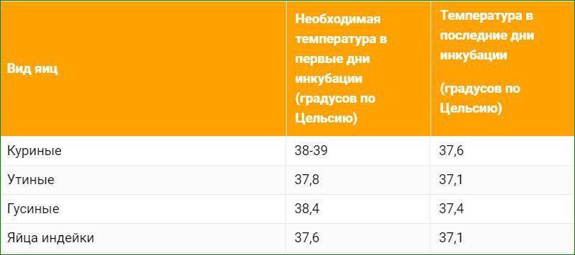 Повышение температуры на 1–2 градуса убьёт зародыш. Излишнее проветривание высушит скорлупу, которая, затвердев, помешает вылуплению. Яйца уток, перепелов, гусей имеют собственные условиями инкубации.