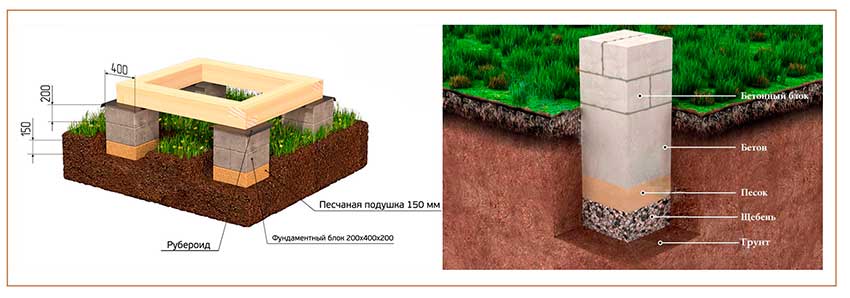 По такому же принципу производится строительство столбчатого фундамента из небольших бетонных блоков.