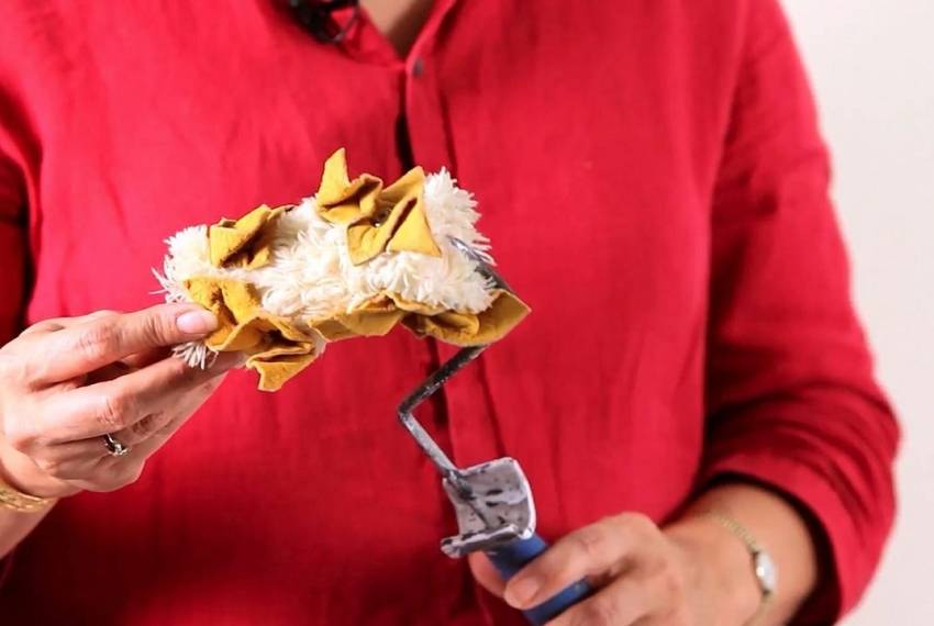 Меховой или поролоновый валик. Шершавая фактура на стене образуется от проведения обычным валиком по краске. Создание узоров и рельефа с помощью фигурного валика. Специальные выпуклые рисунки на таком валике отпечатываются на свеженанесенной отделке