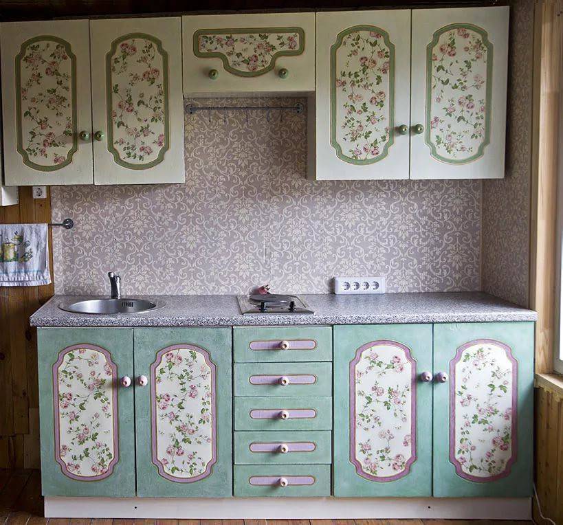 Обилие текстиля. Гардины, коврики, покрывала, подушечки, полотенца и прочие мелочи несут с собой атмосферу очарования, особенно ими пестрит деревенская кухня. Этот дизайн предполагает исключительно натуральные материалы. Часто здесь используется техника пэчворк, или лоскутное шитье, а также кружевные элементы;