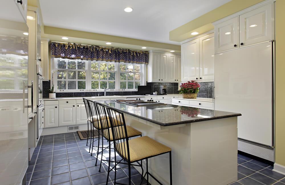 Наконец, стол с разделочной поверхностью или полноценный остров с ящиками и шкафами также следует поставить таким образом, чтобы он замыкал внутреннее пространство проходной кухни, дела ее более уютной.