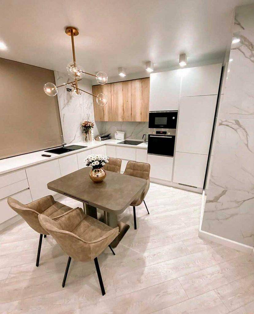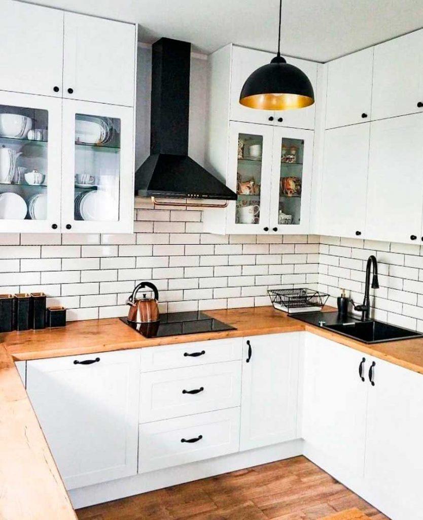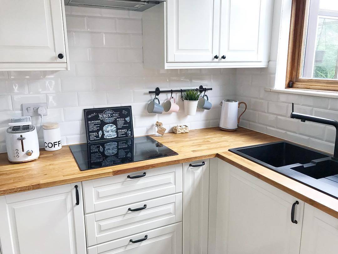 Белые кухни с деревом в скандинавском дизайне