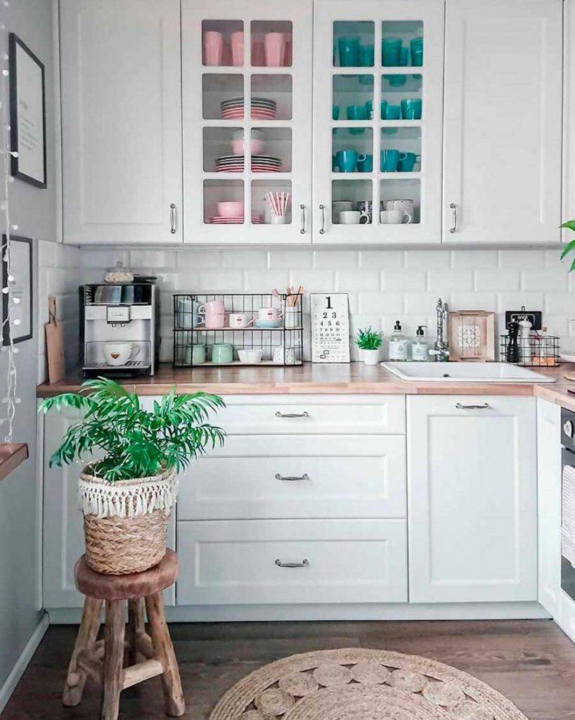 Так вы визуально сделаете кухню шире, добавите недостающего света и простора. Вот несколько вариантов подобного оформления – небольшие световые акценты превращают маленькие кухни в настоящие примеры для подрожания.