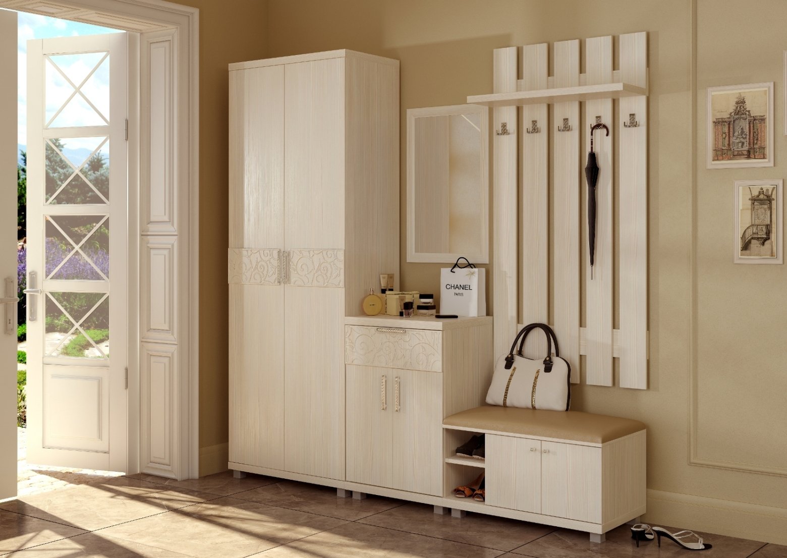 Правильное расположение мебели в маленькой прихожей.