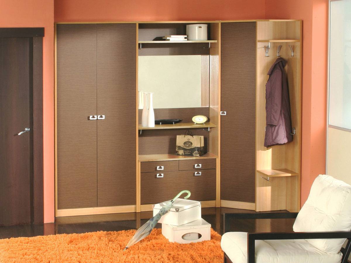 Если в прихожей присутствует угол, то используйте его с пользой. Попробуйте разместить, к примеру, там небольшой шкаф-купе. Или же обычный шкаф — что более вашей душе угодно.