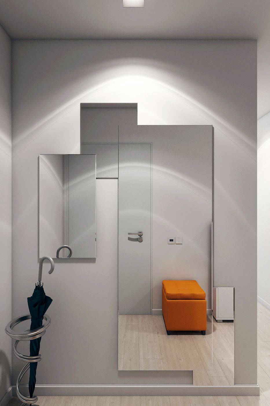О зеркальной дверце шкафа мы уже говорили, но почему не прикрепить большое зеркало на межкомнатную дверь, выходящую в прихожую?