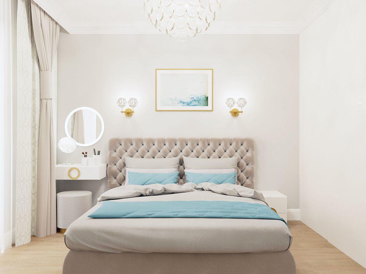 Комбинация нескольких пастельных тонов придаёт спальне «женский» характер, хотя светлое и воздушное помещение может понравиться и мужчине. В 2023 году уместными и модными считаются нежные оттенки бирюзового, голубого, сиреневого, персикового бежевого.