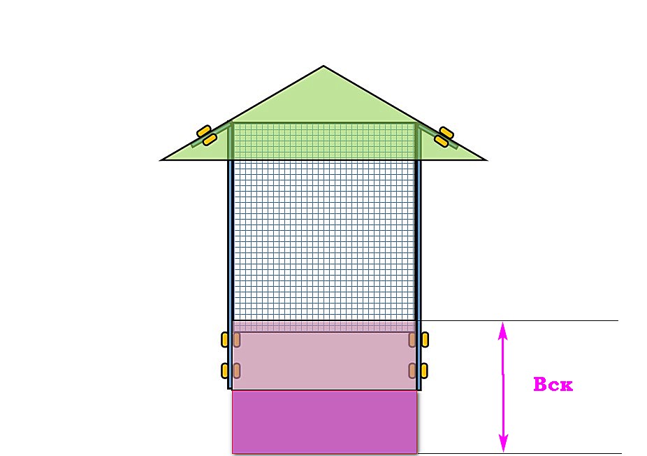 Все работы лучше проводить на горизонтальной поверхности, предварительно снять размеры с дымовой трубы. Рекомендуется сразу определиться с конструкцией, нарисовать эскиз с точными размерами, который будет необходим при раскрое материала, сборке самого устройства для установки на дымоход.