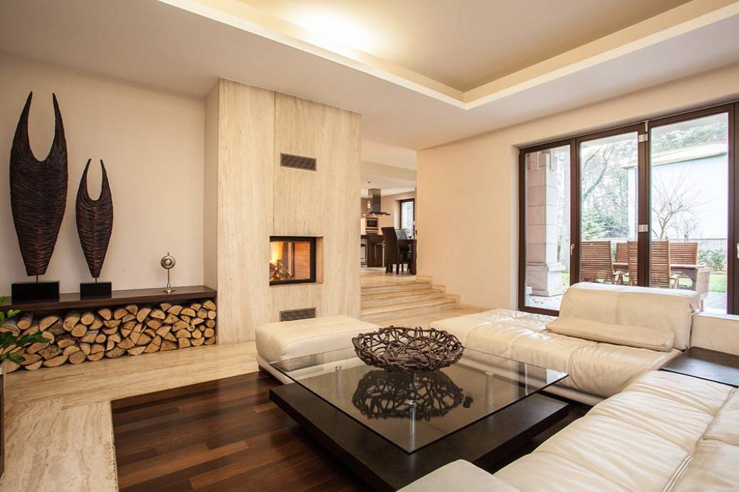 Имитация срезов песчаника и необработанного гранита идеально подходит к оформлению гостиной в стиле кантри или шале. Гипс и светлый мрамор помогут воспроизвести классическую атмосферу, а вот в лофте и минимализме наиболее уместной будет каменная плитка под кирпич.
