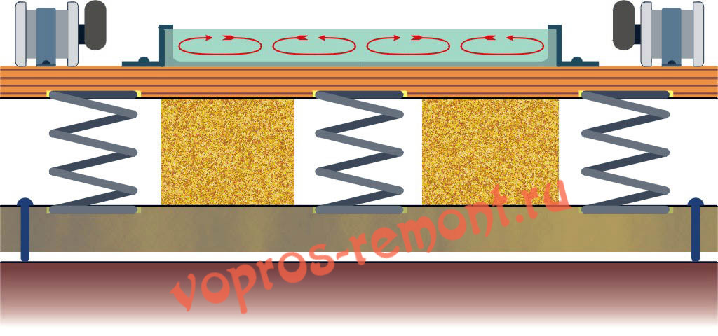 Поролоновые блоки меж пружинами служат гасителями паразитных обертонов; если они будут соприкасаться с пружинами, ничего ужасного. Под весом пустой платформы с вибраторами блоки-гасители должны быть сжаты приблизительно на третья часть.