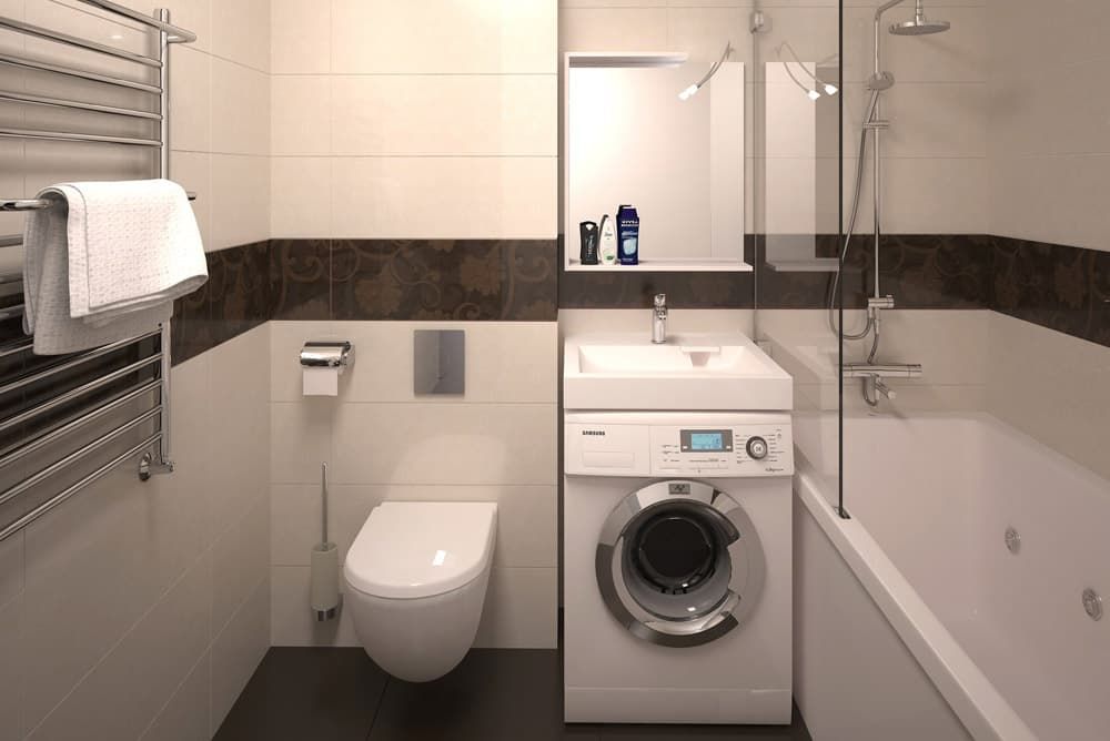 В ванной размером 3 кв. м, особенно если она совмещена с туалетом, стиральную машину лучше не ставить. Это просто неудобно: узкое пространство будет ограничивать движение. В хрущевке бывает и на кухне недостаточно места для этой детали.