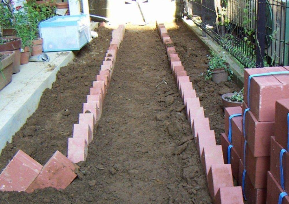 В целях эстетичности и укрепления кладки, как правило, на подготовительном этапе устанавливают бордюры. Для этого: