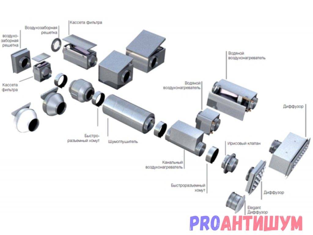- Использовать глушители в проблемных местах воздуховода.