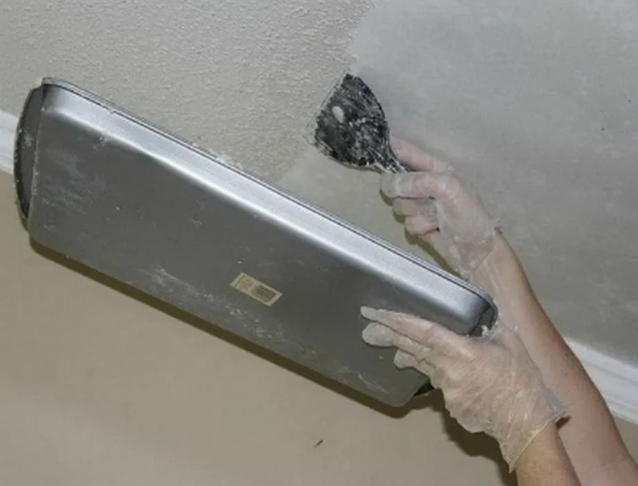 Как снимают старую побелку с потолков