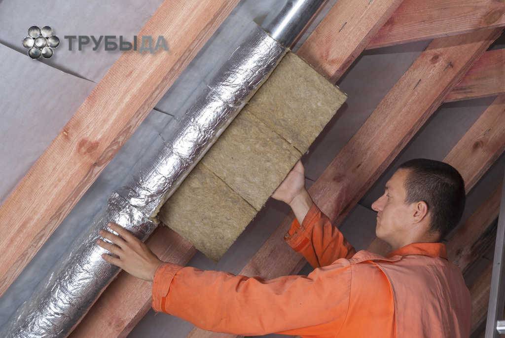 При утеплении труб вентиляции может потребоваться демонтаж стены, ненесущей конструкции. Такой разбор перегородок чаще производится в кухонной или ванной зоне, реже — в жилых помещениях. Процесс демонтажа во многом облегчает подход к вентиляционному каналу. Утепление вентканала начинается с подбора вида утеплителя. Поверхность трубы, выходящая из обогреваемого помещения, утепляется материалом толщиной не менее 1 см. Оголовок дымохода оснащается дефлектором, который улучшает тягу и защищает воздуховод от проникновения влаги из атмосферы.