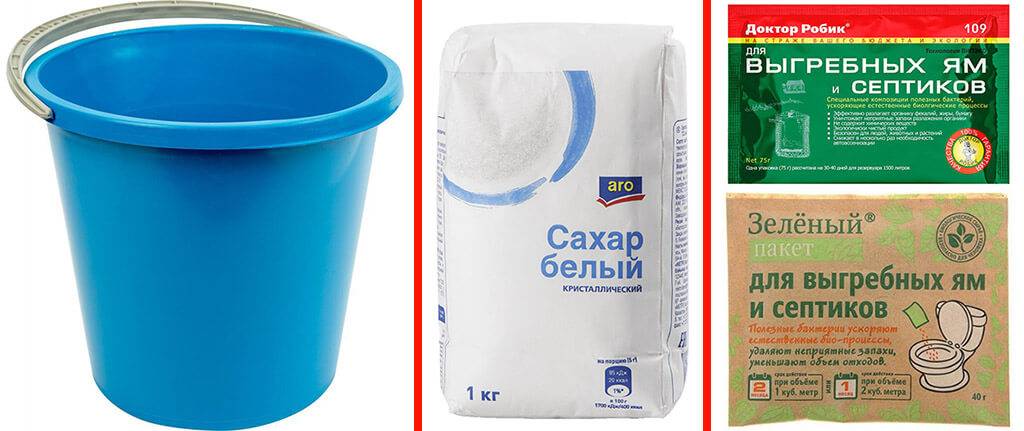 - 2 любых разных пакетика с бактериями для выгребных ям. Можно даже самых дешевых, главное, чтобы они не были одинаковыми.