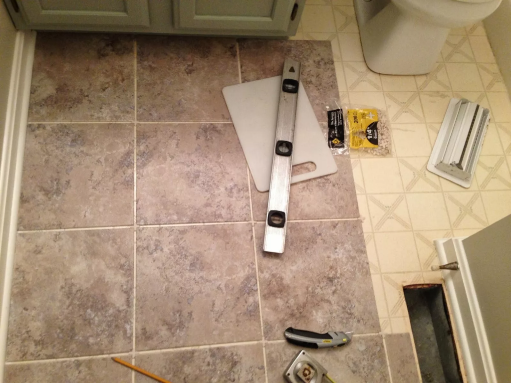 Плитку можно снять и другим способом — с помощью молотка и зубила. Сначала швы, как и в предыдущем способе, смачиваются и очищаются от затирки. Затем под верхнюю плитку вставляется зубило и ударами молотка плитка сбивается. Однако этот процесс более трудоемкий, чем использование перфоратора, и займет больше времени.