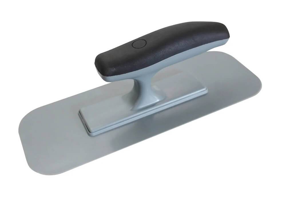 Шпателем удобно наносить материал на стену. Ширина инструмента варьируется от 45 до 300 мм, подбор шпателя по ширине нужно производить с учётом удобства нанесения материала и площади поверхности. Выравнивание нанесённого состава можно выполнять как шпателем (желательно с шириной полотна от 200 мм), так и кельмой – специальным инструментом с гладкой поверхностью. После предварительного схватывания состава, в течение 2-3 часов, мелкие шероховатости и дефекты можно убрать с помощью терки, предварительно смоченной водой.