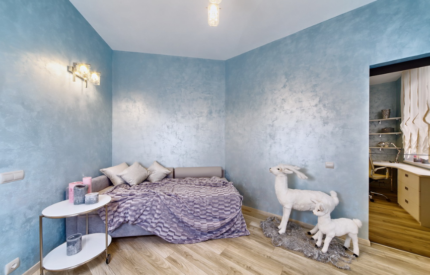 Если есть желание оформить интерьер в более сдержанных тонах, следует выбрать штукатурку с таким эффектом. Материал должен наноситься тонким слоем и дополнительно обладает эффектом мягкого шелка. Прикоснувшись к поверхности, можно получить тактильное удовольствие — штукатурка и на ощупь шелковистая.