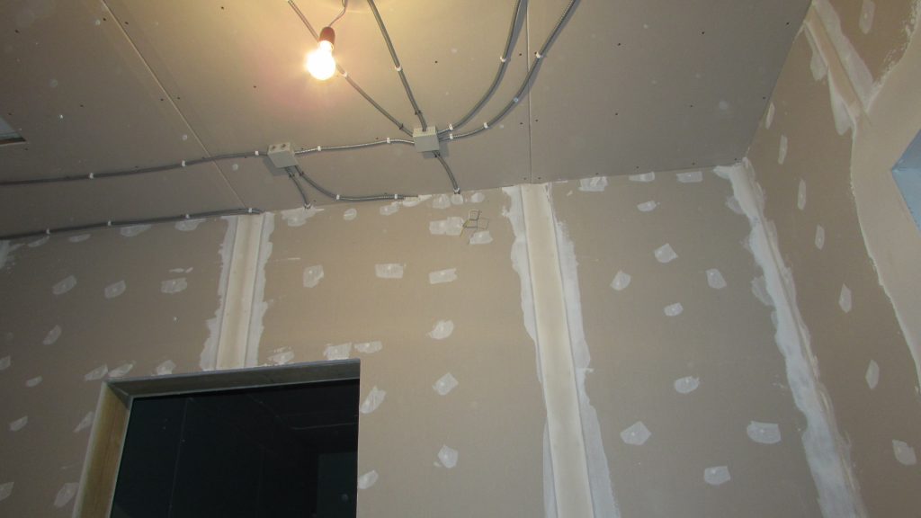 После достижения намеченного результата – идеально гладкой поверхности, и тщательной очистки помещения от пыли, отделка гипсокартона под обои может считаться условно законченной.