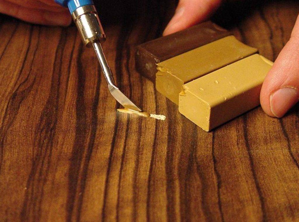 Если царапина мелкая, то перед тем, как отреставрировать шпонированную дверь, от воскового карандаша надо отрезать маленький кусочек, буквально щепотку, зажать в руке на полминуты, чтоб материал стал мягким, начал плавиться. После этого воск нужно втереть в поцарапанное место, а после этого отполировать шпонированную дверь. Для придания блеска стоит применять полироли, в их состав также входит воск.