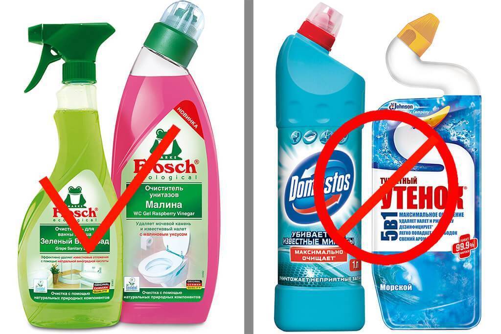 - Использование в доме средств для кухни, ванной и туалета, состоящих только из натуральных компонентов.