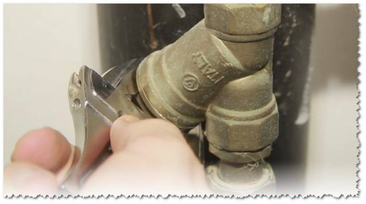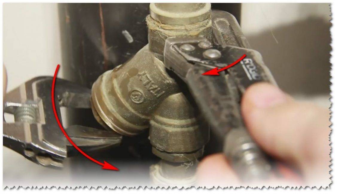 - Приготовить: перекидную отвертку, плоскогубцы, прямой и рычажный разводные ключи, емкость под воду.