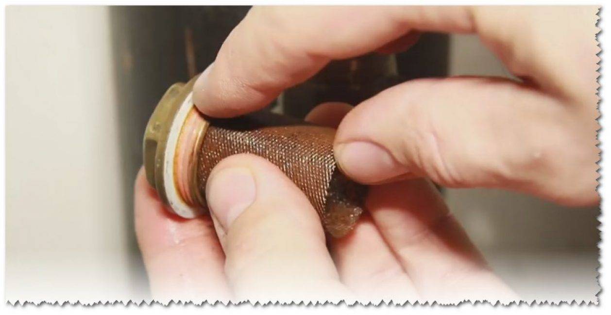 Чтобы почистить «грязевик», устройство разбирают и вынимают фильтрующий элемент. Серьезные загрязнения обрабатывают зубной щеткой, счищая налет из отверстий сетки. Но обычно хватает и простого мытья в воде с небольшим количеством реагента (мыло, лимонная кислота, уксус). Главное — хорошо выполоскать после промывки, прежде чем устанавливать обратно.