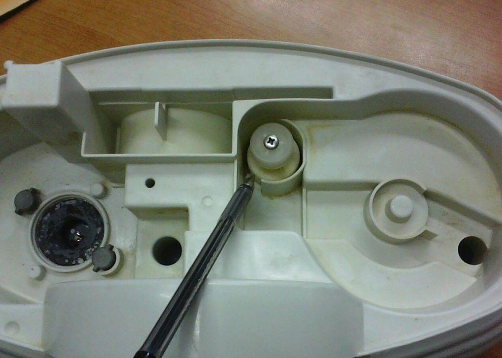 Конструкция из пластиковых деталей легко разбирается: сначала нужно снять резервуар для воды, затем крышку корпуса. Если отделяются более мелкие элементы – носик распылителя, ручка, внутренние перегородки, фильтр – их также нужно отсоединить