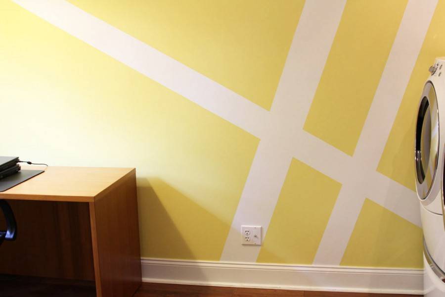 Начинайте окрашивание от угла. Используя удлинитель для валика, прокатывайте им сплошные полосы от потолка к полу без остановки. Каждая последующая полоса должна накладываться на предыдущую на 3–4 см.
