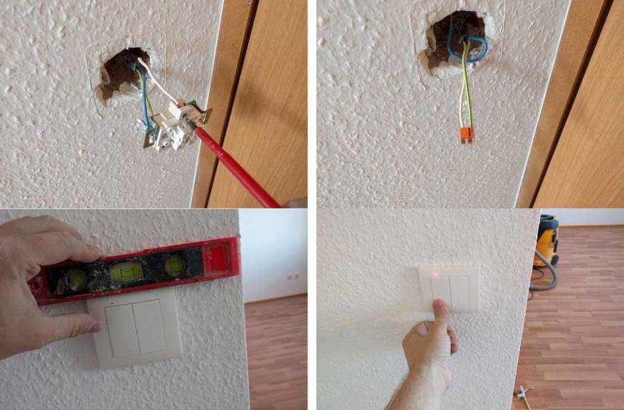 После повторного соединения проводов их следует заизолировать, закрыть крышку коробки, подать питание в сеть и проверить работу освещения и подвод к выключателю фазного провода.
