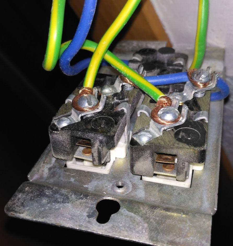 Демонтировали старый выключатель. Из подрозетника торчит обыкновенная алюминиевая лапша 2,5 квадратных мм.
