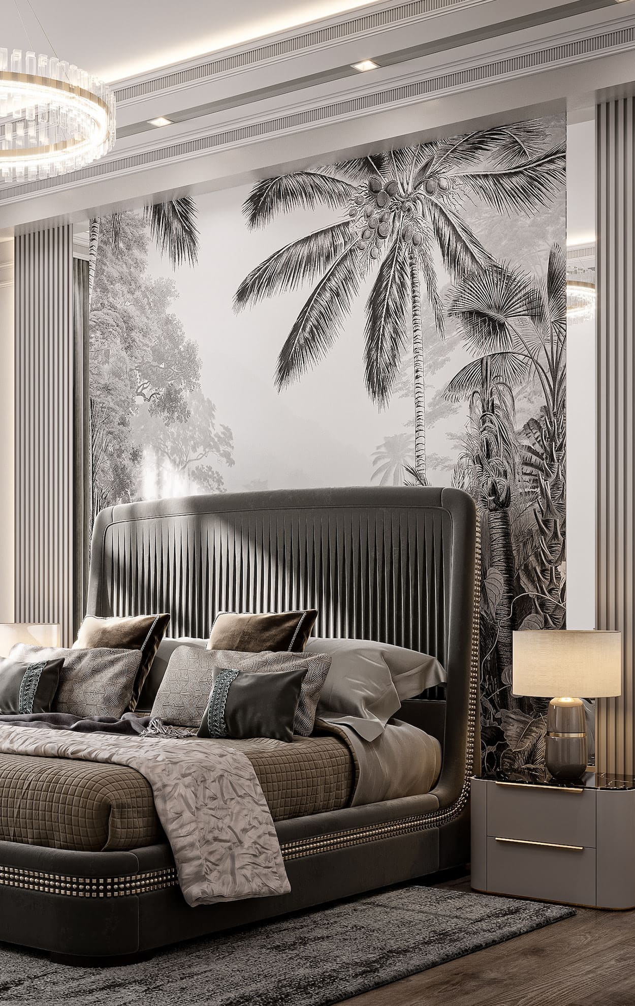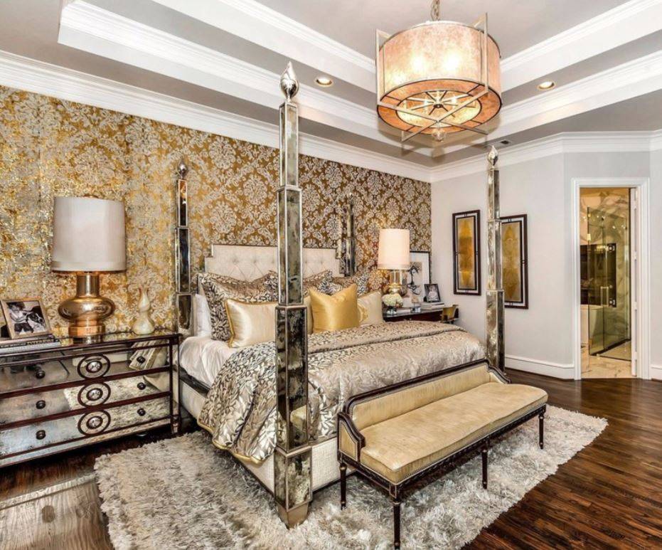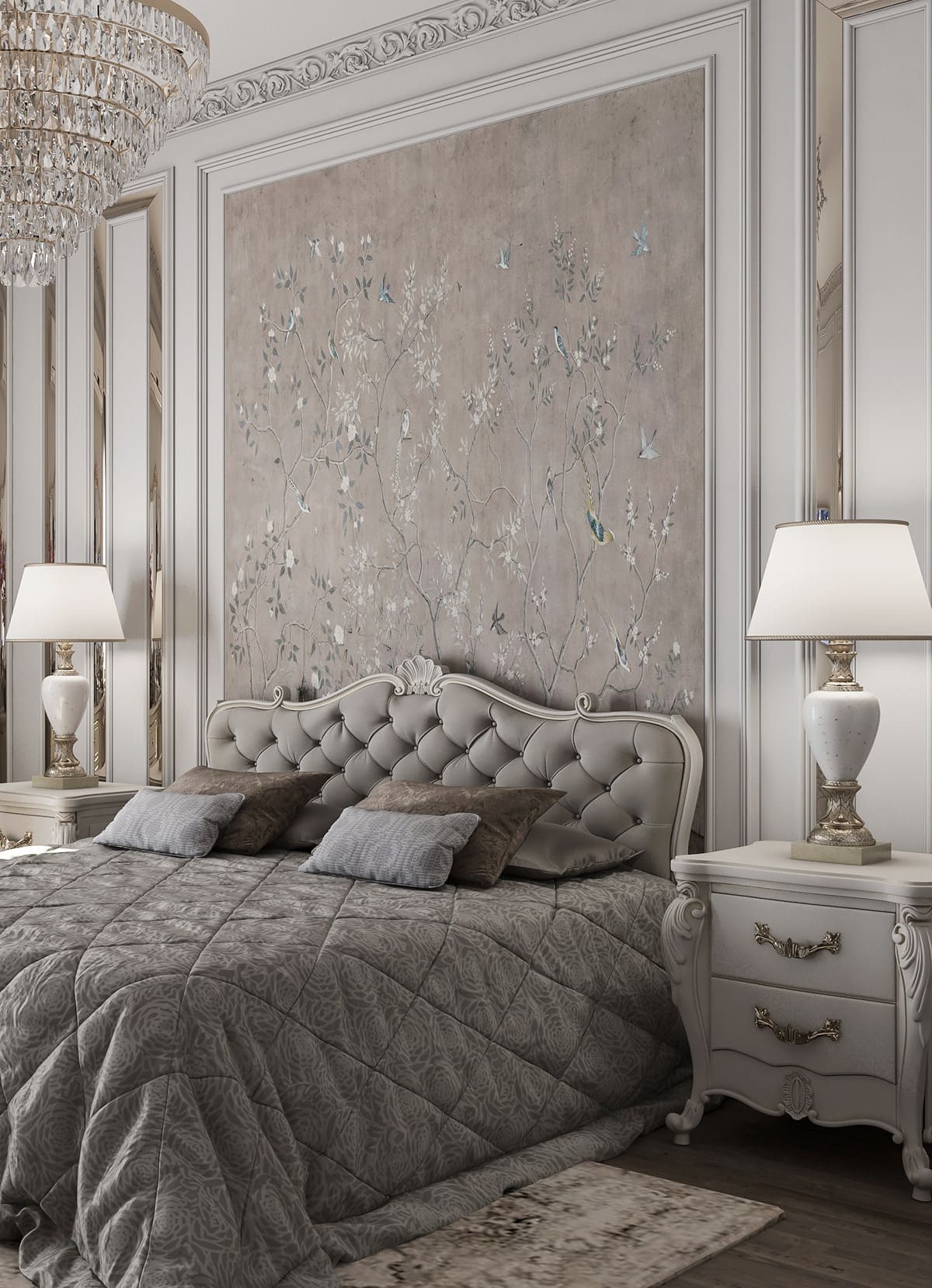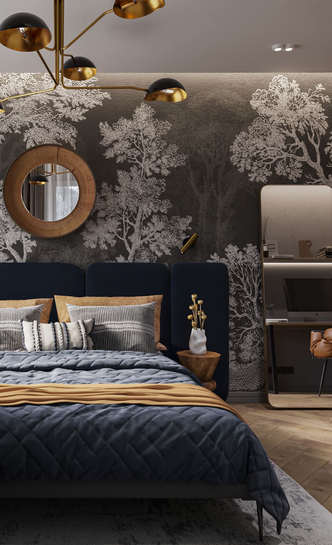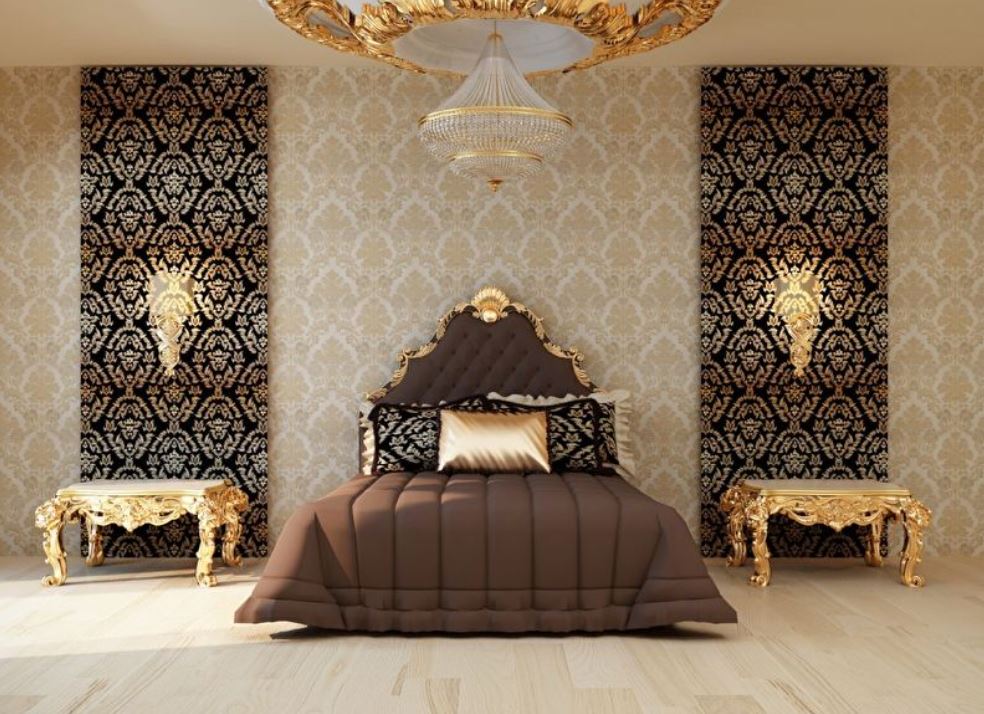 - Выбирайте спальные с тонкими узорами, цветочными мотивами, барокко и геометрическими узорами.