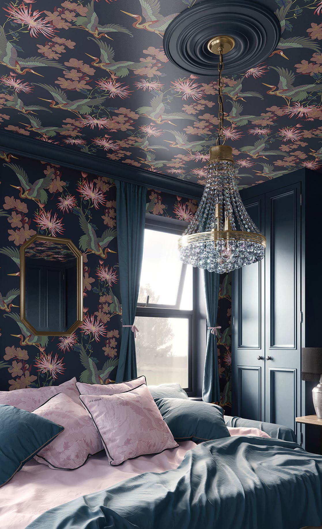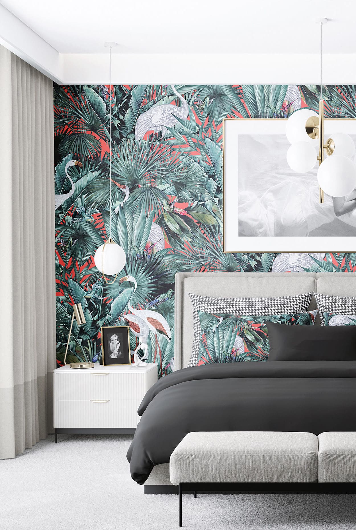 Покрытие стен в спальне крупным узором требует немного утонченности, чтобы создать целостную общую картину. Сделайте это правильно: