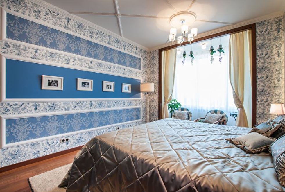 Спальня это комната, которую не принято загромождать мебелью, а потому как минимум одна стена всегда остается «голой». Именно ее и декорируют обоями, играя на контрастах цвета или узора. В специализированных магазинах продаются обои-компаньоны, облегчающие подбор оттенков и рисунков. Рассмотрим наиболее популярные способы комбинирования обоев в спальне.