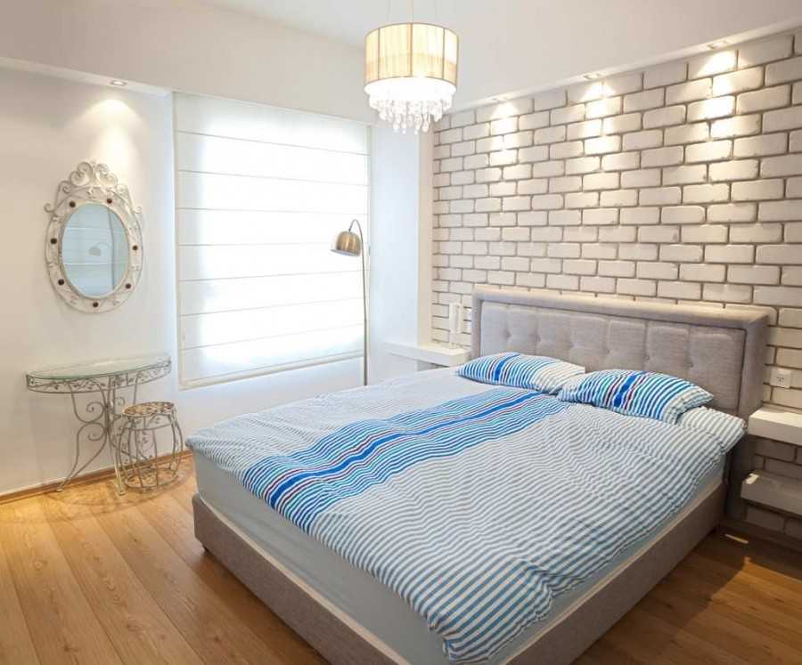 Главное правило – акцент должен существенно отличаться от оформления других стен спальни. Также таким способом можно зонировать помещение, не прибегая к перегородкам и установке мебели на границах.