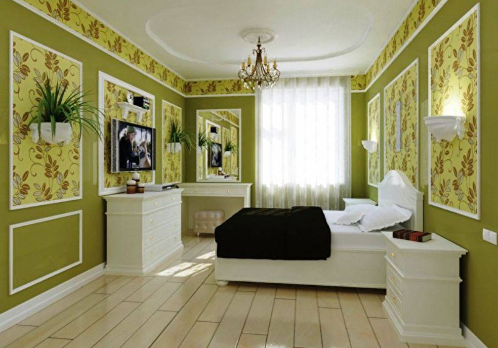 Используя этот нехитрый способ оформления стен в комнате для сна, рекомендуется использовать материалы из одной коллекции, так как они будут одинаковы по качеству, толщине и фактуре.