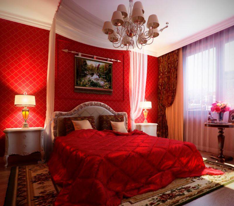 Красные обои в спальне – для открытых и раскрепощенных людей