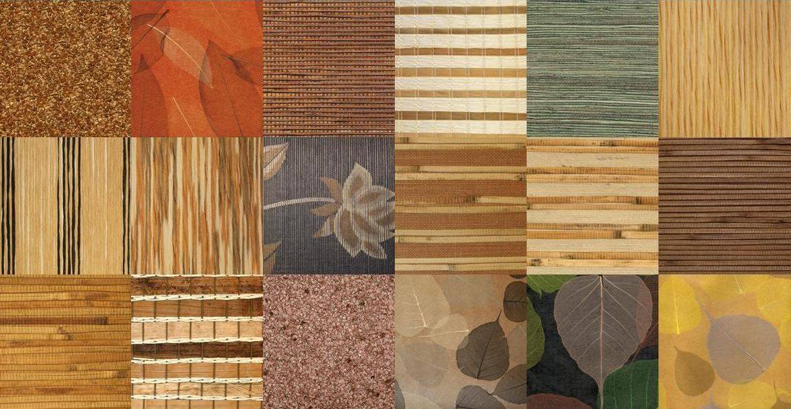 Натуральные (растительные) обои изготавливают из природных и натуральных материалов: древесного шпона, бамбука, джута, морских водорослей, камыша, папируса, пробки и пр. Фрагменты или волокна природных материалов приклеивают на основу из неотбеленной бумаги, полотна или флизелина.