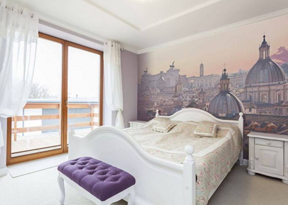 Дно дизайнеры рекомендуют применять их с осторожностью. Ими стоит оклеивать только одну стену спальни, причем необходимо, чтобы изображение не загораживалось мебелью и декором