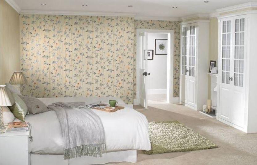 Бумажные обои – экологичный и недорогой вариант для оклейки стен в спальне. Обладая определенной сноровкой, клеить их легко, а бумага отлично пропускает воздух.