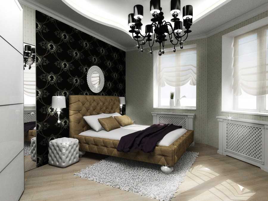 В крупногабаритных помещениях можно дать волю фантазии и экспериментам, устроив игру контрастов и в качестве акцента сделать темный дизайн обоев для спальни, а мебель использовать светлую. Но будьте внимательны, не заигрывайтесь!