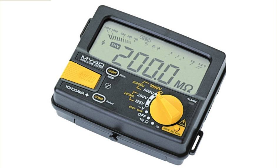 При эксплуатации электрических устройств широко используются цифровые мегомметры модели: Ф4101/4102 от 100.0 до 1000.0 В. Наладчики до сих пор работают с марками тестеров М4100/1, 4100/5 и МС-05 м от 100.0 до 2500.0 В. Выбор типоразмера мегомметра базируется по номинальному сопротивлению тестируемого устройства: силовые кабели и трансформаторы, машины и изоляторы. Для определения состояния изоляции в электроустановках до 1000.0 В допускается применять мегомметры от 100.0-1000.0 В, а в установках более 1000.0 В — 1000.0-2500.0 В.